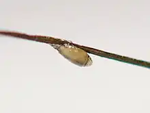 Comme le pou de tête, la femelle pose des lentes sur la base des poils. Les adultes ne peuvent pas survivre plus de 24 heures hors contact avec l'homme, et les lentes pas plus de huit jours.