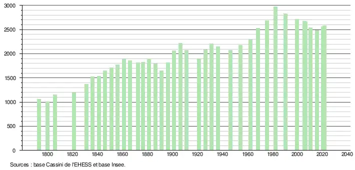 L'évolution du nombre d'habitants est connue à travers les recensements de la population effectués dans la commune depuis 1793. Pour les communes de moins de 10 000 habitants, une enquête de recensement portant sur toute la population est réalisée tous les cinq ans, les populations légales des années intermédiaires étant quant à elles estimées par interpolation ou extrapolation[5]. Pour la commune, le premier recensement exhaustif entrant dans le cadre du nouveau dispositif a été réalisé en 2005[6].