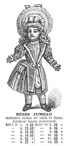 La fabrication des poupées Jumeau a commencé dans les années 1840 dans la Maison Jumeau fondée par Louis-Désiré Belton et Pierre-François Jumeau à Montreuil-sous-Bois. Belton ne reste pas longtemps dans l'entreprise, mais sous la direction de Pierre-François Jumeau puis de son fils Émile-Louis Jumeau, les poupées Jumeau gagnent une réputation auprès des amateurs de poupées pour leurs visages raffinés et leurs vêtements reproduisant la mode de l'époque. Elles sont toujours recherchées de nos jours.