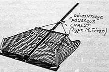 Selon sa force, le pêcheur peut employer des engins plus grands tels que le pousseux à "ailes" ou le filet en forme de chalut que l'on ne pousse pas mais que l'on traîne derrière soi au moyen de cordes. Ce dernier est surtout en usage sur le littoral picard.