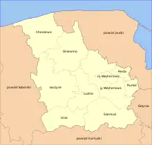 - 7 communes rurales : Choczewo, Gniewino, Linia, Luzino, Łęczyce, Szemud et Wejherowo.