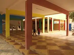- un espace généralement couvert attenant à la cour d'un établissement scolaire et destiné à abriter les élèves, en cas d'intempéries, durant la récréation.