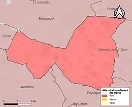 Le retrait-gonflement des sols argileux est susceptible d'engendrer des dommages importants aux bâtiments en cas d’alternance de périodes de sécheresse et de pluie. 99,9 % de la superficie communale est en aléa moyen ou fort (94,5 % au niveau départemental et 48,5 % au niveau national). Sur les 86 bâtiments dénombrés sur la commune en 2019, 86 sont en aléa moyen ou fort, soit 100 %, à comparer aux 93 % au niveau départemental et 54 % au niveau national. Une cartographie de l'exposition du territoire national au retrait gonflement des sols argileux est disponible sur le site du BRGM[20],[Carte 3].