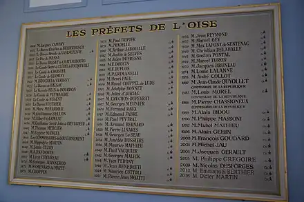 Liste des préfets de l'Oise, photographiée en 2017