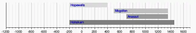 | Hohokam | du IIIe siècle av. J.-C. au XVe siècle | État d'Arizona (Sud-Ouest des États-Unis) |