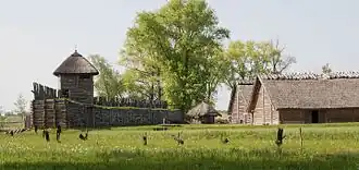L'arrivée des premiers peuplements slaves est sujette à discussion entre les spécialistes. Dans le nord de la Pologne, aucun assemblage archéologique attribué aux Slaves ne peut être daté plus tôt qu'aux environs de 700[6]. Au IXe siècle, dans la Descriptio civitatum et regionum ad septentrionalem plagam Danubii (La description des cités et des régions situées au nord du Danube), le géographe bavarois décrit brièvement la géographie et la répartition des peuples slaves divisés en plusieurs tribus : les Polanes dans la région de Grande-Pologne, les Vislanes dans la région de Petite-Pologne, les Slézanes vers Wrocław, etc. Les Polanes, dominant les autres tribus, donnent leur nom à la Pologne. Des fouilles archéologiques ont permis de mettre au jour des castrums du VIIIe siècle qui attestent l'existence d'une société organisée des Polanes[7]. En 863, les missions chrétiennes arrivent dans la région : Cyrille et Méthode parlent de concepts christiques et écrivent l'histoire autochtone.