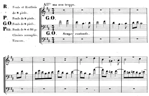 | Effectif | orgue (CFF 30B) (et versions du compositeur pour harmonium et piano (CFF 30A) ainsi qu'une transcription pour violon, harmonium et piano (CFF 30C)) |