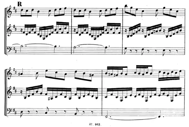 - Prélude : préparation du musicien à jouer l’ensemble instrumental. Le prélude est suivi d'un mouvement lent de courte durée, puisqu'il est composé de neuf mesures (trois périodes).