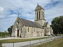 - Église Saint-Pierre (XVe – XIXe siècles) en forme de croix. Elle abrite une Vierge de calvaire dite Sainte-Opportune des XVe – XVIe siècles et un groupe sculpté saint Roch, l'ange et le chien, classés au titre objet aux monuments historiques[20] ainsi qu'un maître-autel du XVIIIe, les statues Notre-Dame des Avents du XVIe et sainte Barbe et sa tour du XVIe, une verrière du XXe de A. Vigneron[7].