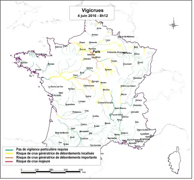 En décembre 2007, Météo-France met en place une nouvelle carte de vigilance pluies-inondations afin d’améliorer l’efficacité de la chaîne d’alerte et la communication relative aux risques par des bulletins de suivi et des conseils de comportement (disponibles sur le site internet de Météo-France). Il s'agit d'un système d’information en continu fournissant au grand public et aux autorités de tous les échelons une information qualitative et graduée sur le risque de crues et des prévisions hydrologiques sur les cours d’eau du territoire métropolitain faisant l’objet d’une surveillance[20],[21].