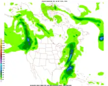 La prévision quantitative de précipitations, quelle que soit son origine, se présente comme une carte météorologique montrant les zones où les précipitations tomberont ou la probabilité qu'une certaine quantité tombe au cours de la période de prévision visée[4]. Elle doit tenir compte de tous les effets dynamiques et thermodynamiques qui produisent le mouvement vertical dans l'atmosphère : convection, ascendance due aux fronts, subsidence due aux anticyclones, soulèvement ou descente dus à la circulation atmosphérique passant sur le relief. La PQP est particulièrement sensible à l'humidité contenue dans la couche limite planétaire et une bonne modélisation de cette mince couche est très importante car de faibles changements peuvent entrainer de grands écarts de quantités de précipitations[5].