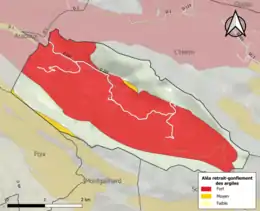 Les mouvements de terrains susceptibles de se produire sur la commune sont soit des chutes de blocs, soit des glissements de terrains, soit des effondrements liés à des cavités souterraines, soit des mouvements liés au retrait-gonflement des argiles. Près de 50 % de la superficie du département est concernée par l'aléa retrait-gonflement des argiles, dont la commune de Pradières[35]. L'inventaire national des cavités souterraines permet par ailleurs de localiser celles situées sur la commune[36].