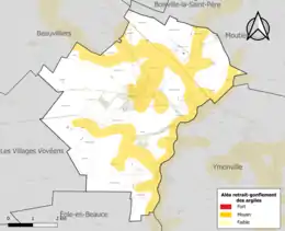 Le retrait-gonflement des sols argileux est susceptible d'engendrer des dommages importants aux bâtiments en cas d’alternance de périodes de sécheresse et de pluie. 33,9 % de la superficie communale est en aléa moyen ou fort (52,8 % au niveau départemental et 48,5 % au niveau national). Sur les 202 bâtiments dénombrés sur la commune en 2019, 149 sont en aléa moyen ou fort, soit 74 %, à comparer aux 70 % au niveau départemental et 54 % au niveau national. Une cartographie de l'exposition du territoire national au retrait gonflement des sols argileux est disponible sur le site du BRGM[19],[Carte 2].