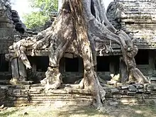 Restes d'un arbre ayant poussé sur l'un des bâtiments du temple.