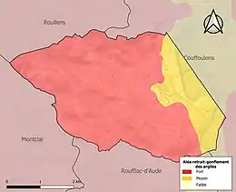 Le retrait-gonflement des sols argileux est susceptible d'engendrer des dommages importants aux bâtiments en cas d’alternance de périodes de sécheresse et de pluie. La totalité de la commune est en aléa moyen ou fort (75,2 % au niveau départemental et 48,5 % au niveau national). Sur les 323 bâtiments dénombrés sur la commune en 2019, 323 sont en aléa moyen ou fort, soit 100 %, à comparer aux 94 % au niveau départemental et 54 % au niveau national. Une cartographie de l'exposition du territoire national au retrait gonflement des sols argileux est disponible sur le site du BRGM[24],[Carte 3].