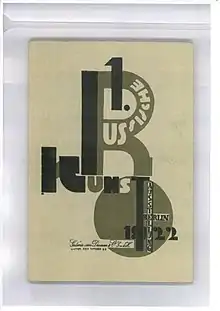Page de titre du catalogue d'exposition de la Première exposition d'art russe de Berlin par El Lissitzky.
