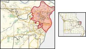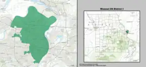 Le 1er district congressionnel du Missouri se trouve dans la partie orientale de l'État. Il comprend toute la ville de Saint-Louis et une grande partie du nord du Comté de Saint-Louis, y compris les villes de Maryland Heights, University City, Ferguson et Florissant. Avec un indice de CPVI de D+27, c'est le district le plus démocrate du Missouri[1]. Environ la moitié de la population du district est afro-américaine.