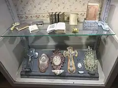 Dans la chambre de l'étage à l'angle sud, un ancien papier peint panoramique très rare, daté des années 1810, est exposé dans un état exceptionnel. S'il est sûr qu'il n'a pas été imprimé par la manufacture Jean Zuber et Cie[2], il est parfois attribué sans preuve à la manufacture Dufour[3] car cette fabrique a imprimé les plus célèbres dans le domaine du papier peint panoramique. Si elle n'est pas identifiée, la manufacture de papier peint qui l'a imprimé, détenait un grand savoir-faire et a probablement choisi ce thème religieux car il venait d'être popularisé par l'opéra Joseph d'Etienne-Nicolas Méhul. Cadeau présumé au curé, d'un prince de la Maison d'Arenberg (richissime et importante famille propriétaire terrienne de la région), il représente la vie de Joseph, fils de Jacob, petit-fils d’Abraham, de la Religion abrahamique (Religion du Livre) sous forme de fresque en huit tableaux. Il comporte d'importants mélanges anachroniques de références à la Bible, à la civilisation gréco-romaine, à la Révolution française, à l'exotisme et la campagne d'Égypte de 1798-1801 du général Bonaparte (futur empereur Napoléon Ier), ainsi qu'à la Franc-maçonnerie[4],[5].