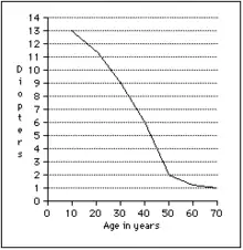 Jusqu'à quarante ans, le cristallin de l’œil est assez souple et élastique pour accommoder, en se dilatant ou en se rétractant, à toutes les distances. Avec l'âge le cristallin durcit et devient de moins en moins apte à accommoder. Ce phénomène est appelé presbytie.
