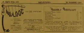 | Azadamard | Ազատամարտ | « Combat pour la liberté » | Journal de la Fédération révolutionnaire arménienne | 1909-1914 | Constantinople | ![]() |