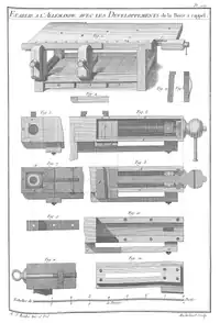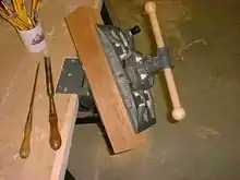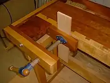 Une presse pour le travail du bois maintient le travail dans ses mâchoires, ou l'immobilise contre une butée d'établi ou un valet. Les trous destinés à recevoir les butées ou valets sont généralement percés dans l'axe de l'étau à des intervalles de 7,5 à 10 centimètres (3 à 4 pouces), d'autres étant ajoutés à l'établi pour servir à diverses fins.
