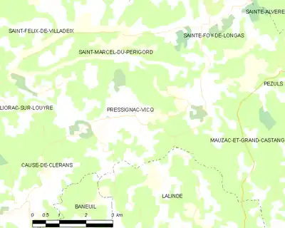 La commune de Pressignac-Vicq est située dans le sud du département de la Dordogne.