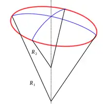 où et sont les deux rayons de courbure selon deux directions orthogonales de la surface au point considéré. Par convention, elles sont comptées positivement quand le centre de courbure est du côté b.