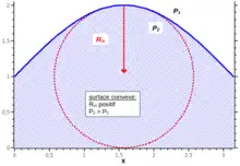 Remarque : il faut faire attention car il y a plusieurs définitions et méthodes de détermination de la courbure et du rayon de courbure, ce qui peut conduire à des différences de signe (voir l'article sur la courbure d'un arc).