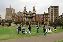 - le City Hall : l'hôtel de ville de Pretoria, célèbre pour son carillon et ses 32 cloches, fut inauguré en 1935. Une statue équestre d'Andries Pretorius et une statue en bronze de son fils Marthinus Wessel Pretorius, fondateurs de la ville, se situent dans le jardin (Pretorius square) qui sépare l'hôtel de ville du Transvaal Museum. En 2006, une statue en bronze de 6 mètres de haut du chef Tshwane a été inauguré juste devant l'entrée de l'hôtel de ville[39] ;