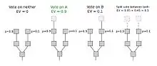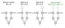 Dans le système de validation d'un bloc supplémentaire par preuve d'enjeu, la situation est différente : le vote est libre et ne coûte rien. Chaque pièce qu'un mineur possède a une certaine chance par seconde d’être utilisable pour signer un bloc. Dans le cas de branches multiples, la stratégie optimale est de voter sur toutes les branches en même temps dans l'espoir de pouvoir valider quelque part le bloc et toucher la récompense. C’est le concept où il n'y a « rien en jeu » (« nothing at stake »).