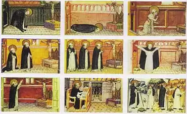 Saint Dominique codifia les manières de prier et leurs attitudes corporelles. Dans la seconde moitié du XIIIe siècle, un auteur anonyme retranscrit ce travail dans un manuscrit, Les modes de prier de saint Dominique, dont une copie en catalan (datant de la fin du XIVe siècle-début du XVe siècle) se situe actuellement à la Bibliothèque vaticane (Codex Rossianus 3). Ces neuf modes sont les suivants :