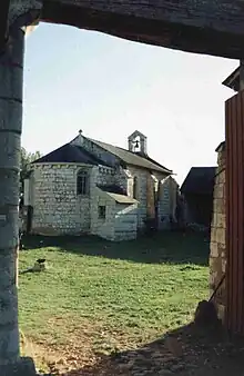 AU XIIe siècle, l'église romane est dotée d'un clocher-mur et d'un portail orné à deux voussures qui reposent sur de simples pied-droits, l’une ornée de palmettes, l’autre de fleurs à quatre pétales nervurés[7].