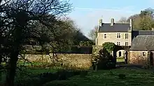 L'enceinte a disparu à l'ouest et au nord. Des douves en eau baigne le sud et le nord de la propriété. L'accès à la ferme se fait par une porte à pont dormant qui remplace l'ancien levis. L'écusson armorié[6] d'Arthur de Cossé qui ornait la porte a été donné au musée d'Avranches par M. Maillard-Lacavée en 1845. La porte du manoir, plus à ouest, est une porte cochère et piétonne à pont dormant.