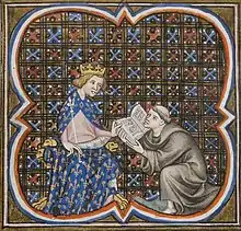 La chronique en vieux français de Primat de Saint-Denis, le Roman des rois, a été présentée au roi Philippe III vers 1274, probablement à la demande du père et prédécesseur de Philippe, Louis IX[8]. Un abbé de Saint-Denis, Matthieu de Vendôme, a également joué un rôle important dans sa production et est un personnage plus imposant que le roi dans la miniature de dédicace (en) originale[9]. Elle a été créée en traduisant et en adaptant des extraits de diverses histoires latines conservées dans les archives de Saint-Denis[8].