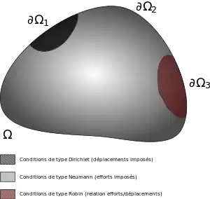 Pour un milieu continu de frontière soumis aux efforts volumiques et aux efforts surfaciques dans le champ :