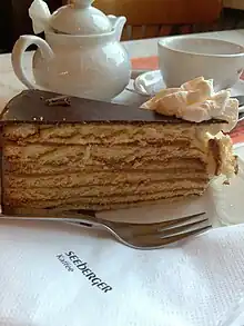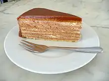 La Prinzregententorte[1] (en allemand : [ˈpʁɪnts.ʁeˌɡɛntənˌtɔʁtə]) est un gâteau au chocolat bavarois consistant en sept ou huit minces couches de génoise intercalées entre de la crème au beurre au chocolat, puis couvert de confiture à l'abricot. Un glaçage au chocolat noir est ensuite mis sur l'extérieur.