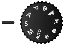 La priorité à la vitesse est souvent abrégée en S (chez Nikon, Minolta, Konica Minolta, Sony, Olympus, Sigma, Panasonic) ou Tv (pour time value chez Canon, Pentax, Leica) sur la molette de sélection de mode de l'appareil photo[1].