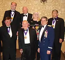 Récipiendaires du prix Tony Jannus (médaille au ruban violet) en 2008, dont Herb Kelleher et Norman Mineta.