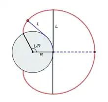 Une chèvre est attachée à une tour circulaire (ou un silo) de rayon R située dans un champ. Sachant que sa corde est de longueur L, quelle superficie d'herbe pourra-t-elle brouter ?