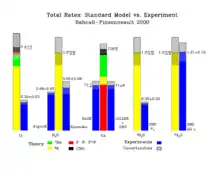 Nous avons pour ces neutrinos : . Nous retrouvons grossièrement la valeur donnée par l’expérience. Une déviation de la valeur de la probabilité est une indication de la présence d’oscillations.