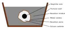 Le procédé consiste à chauffer un mélange de dioxyde de silicium (SiO2), sous forme de sable ou de quartzite[1], et du coke pulvérisé, dans un creuset en fonte[2].