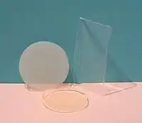 Le verre est ici directement fabriqué à partir d'une solution liquide (ensuite rendue colloïdale) de silice et d’autres composés chimiques (soude, chaux, magnésie…) et de catalyseurs (ou en milieu homogénisé par des ultrasons (sonochimie[1]) et/ou chauffé par des micro-ondes[2]). Ces matériaux sont regroupés sous l'appellation générique « procédé sol-gel ». On dispose par ces méthodes de matériaux massifs, mais elles sont surtout bien adaptées à la réalisation de films et revêtements (par exemple pour un traitement de surface de verre, de métal ou de matières plastiques (ex : film anti-corrosion, anti-UV, anti dépôt de polluants, anti-abrasion, ou encore traitement anti-rayures et/ou « anti-réfléchissant » de verres de lunettes ou d'autres verres ou plastiques, éventuellement bi-face))[3]. Outre le fait de pouvoir réaliser des matériaux purement inorganiques, elles sont aussi bien appropriées pour la synthèse de verres hybrides organo-minéraux (dopés). Les précurseurs nécessaires existent pour un grand nombre de métaux, métalloïdes et non-métaux. Ils sont soit liquides soit solides, et dans ce dernier cas ils sont pour la plupart solubles dans des solvants usuels. Il est donc possible de préparer des mélanges homogènes des monomères (précurseurs) ou oligomères[3].