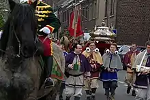 Certaines associations Lembecq rejoindront également la procession , comme le KWB, le Chiro et l'association de tennis de table mais les groupes traditionnels sont les porteurs et les quatre groupes de soldats.