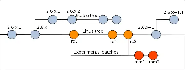 - la branche principale (nommée aussi "2.6.x kernel tree" ou "Linus tree")