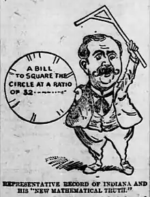 L’Indiana pi bill[1] (projet de loi pi de l'Indiana) désigne communément, aux États-Unis, la proposition de loi no 246 qui faillit être adoptée en par l'Assemblée générale de l'Indiana. C'est l'une des tentatives les plus connues pour établir une vérité scientifique par un accord législatif. Il est parfois dit, par erreur, que cette loi devait définir le nombre pi avec une valeur erronée. Malgré son nom, le principal objectif de cette loi est un moyen d'obtenir la quadrature du cercle, plutôt que l'établissement de la valeur de pi. Malgré tout, le texte de loi révèle du contenu qui dicte différentes valeurs erronées de pi, telle 3,2. Bien que le problème de la quadrature du cercle fût supposé insoluble depuis l'Antiquité, de nombreuses personnes ont tenté de le résoudre ; cette impossibilité avait été rigoureusement prouvée par Ferdinand von Lindemann quelques années plus tôt, en 1882.