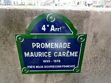 Cette voie porte le nom de Maurice Carême (1899-1978), poète et romancier belge d’expression française.