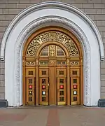 Les murs sont en marbre rouge de l'Oural, mais ses ornements végétaux en font l'originalité. Des médaillons en faïence blanc et or montrent les peuples de l'URSS travaillant aux champs, de jeunes pionniers plantant des arbres ou des chercheurs occupés à sélectionner de nouvelles plantes.