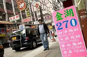 Actuellement dans l'argot chinois, une « poule » (jinu) désigne une prostituée et un « canard » désigne un gigolo. Il y eut pendant des années[Quand ?] des « poulaillers mobiles » c'est-à-dire des taxis mobiles qui abritaient les activités des prostituées[20]. Le terme xiaojie (小姐 en chinois simplifié), signifiant « demoiselle/mademoiselle », peut désigner une prostituée (en particulier dans le nord de la Chine).[réf. nécessaire]