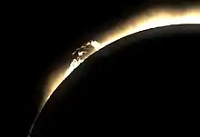Lors d'une éclipse totale ou annulaire[1], la Lune recouvre suffisamment le Soleil pour que la lumière de ce dernier soit suffisamment faible pour que l'on puisse voir des protubérances solaires à l'œil nu ou au télescope. Il faut toutefois utiliser un filtre UV pour se protéger de la destruction de la rétine de l'œil qu'engendre la fixation du soleil[2]. Des lunettes spéciales[3] ou des filtres de télescopes sont en vente dans les boutiques spécialisées.