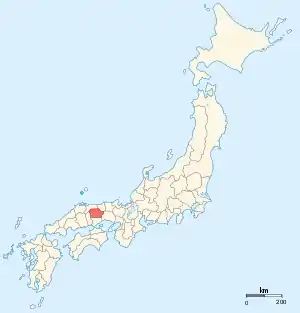 Carte des anciennes provinces du Japon avec Mimasaka mise en évidence.